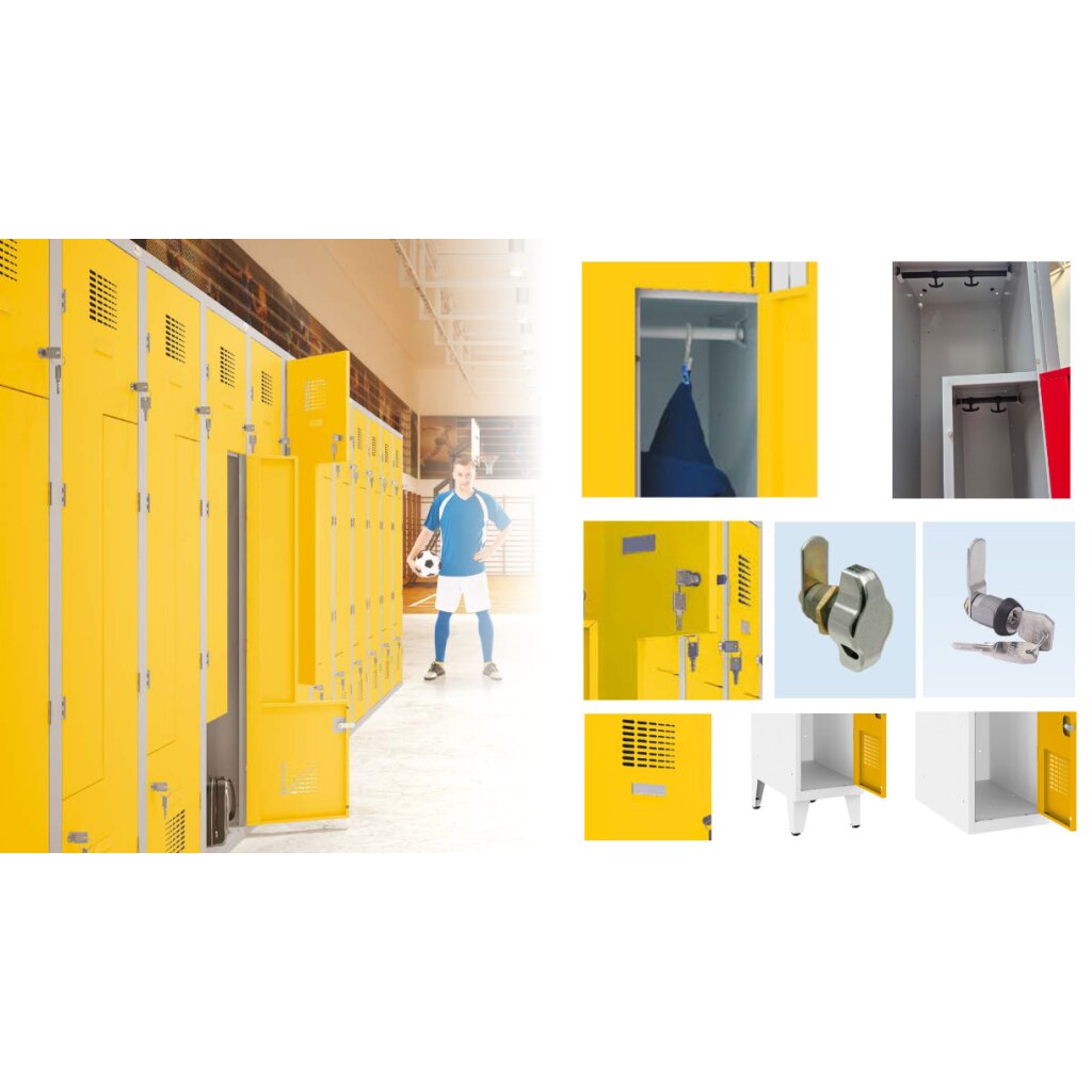 Robuste Pulverbeschichtung in großer Farbauswahl. Farbe von Korpus und Türen kann unterschiedlich ausgewählt werden.